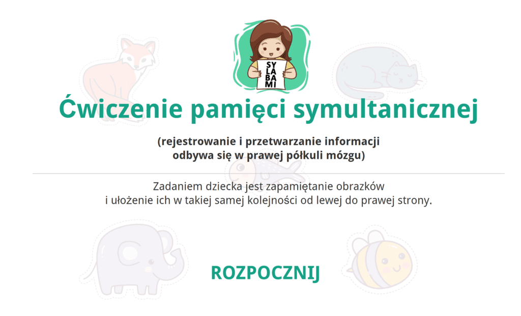 Mamy dla was ćwiczenie interaktywne, które stymuluje pamięć i pomaga przygotować dziecko do nauki czytania.